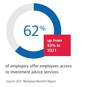 そして、62%の従業員が投資のアドバイスサービスへのアクセスを望んでいます。