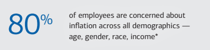 従業員の80%が年代や性別、収入に関わらず、インフレを懸念しています。