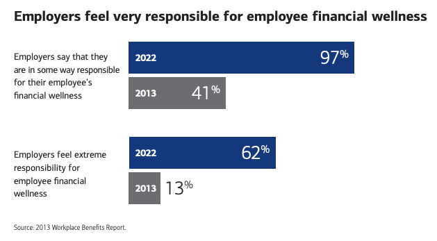 特に、「従業員の経済的な健全性に対して、非常に責任を感じている」と答えた雇用主は2013年に13%だったのが、2022年には62%まで約5倍も上昇しています。