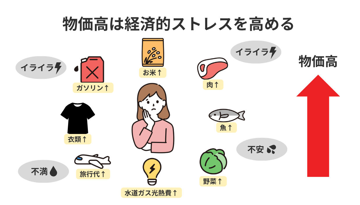 こうした身近な物価上昇が、経済的ストレスの急速な増大を招いているのです。