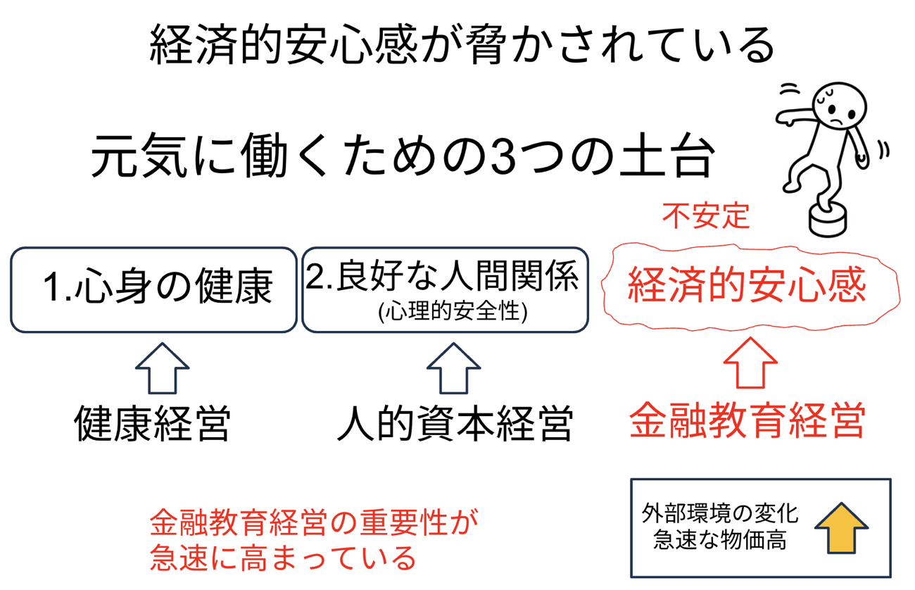 そのような状況だからこそ、物価高時代に高まる経済的ストレスを緩和し、経済的安心感を高める経営方針が金融教育経営が従業員から支持されるようになっています。