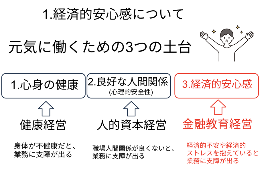 経済的なストレスや不安を抱えている状態では、業務に集中できません。将来の生活への不安や日々の支出への心配は、判断力や生産性を低下させ、仕事のパフォーマンスにも大きな影響を与えます。こうした経済的ストレスや不安を軽減し、従業員の安心感を高めるためのアプローチが金融教育経営です。