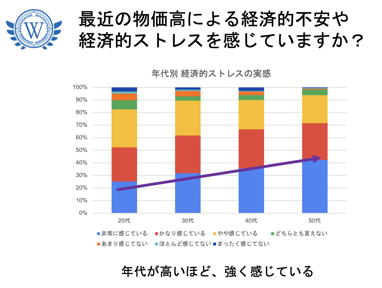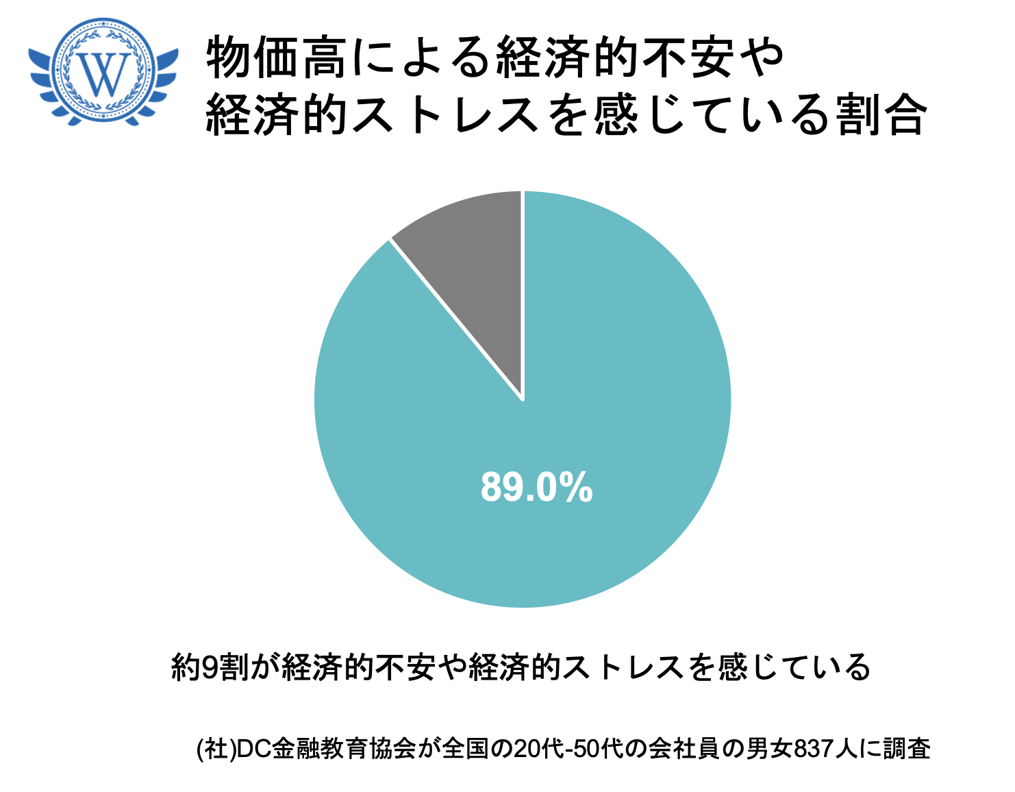 89%、約9割の方が経済的不安や経済的ストレスを感じていると回答しました。