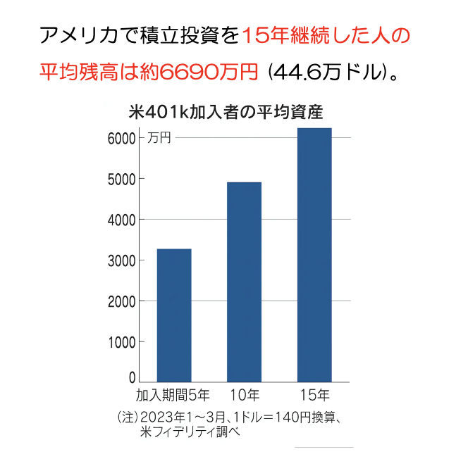 アメリカで非課税所得から、積立投資を15年継続した人の平均残高は約6690万円です。