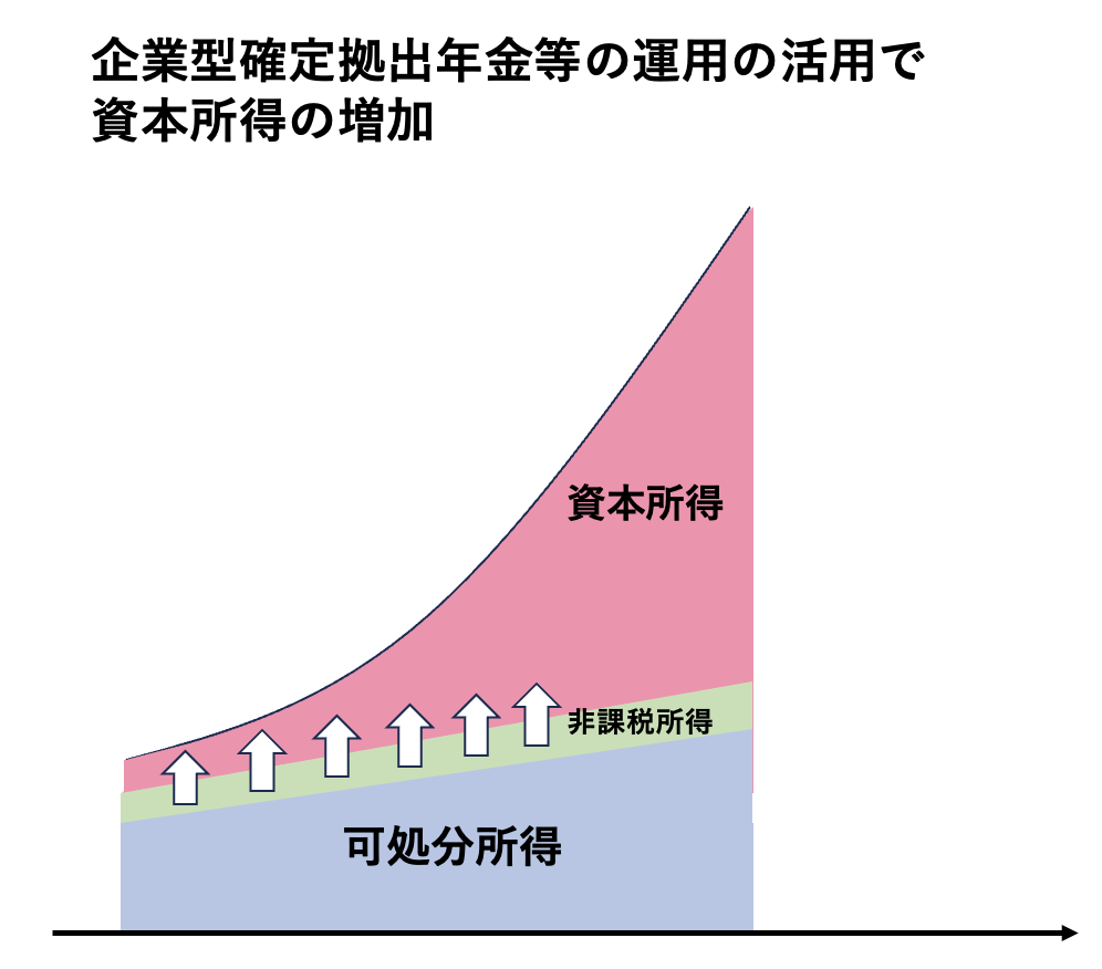 非課税所得を企業型確定拠出年金などで運用に回すことで、長期的に資本所得の増加が期待できます。