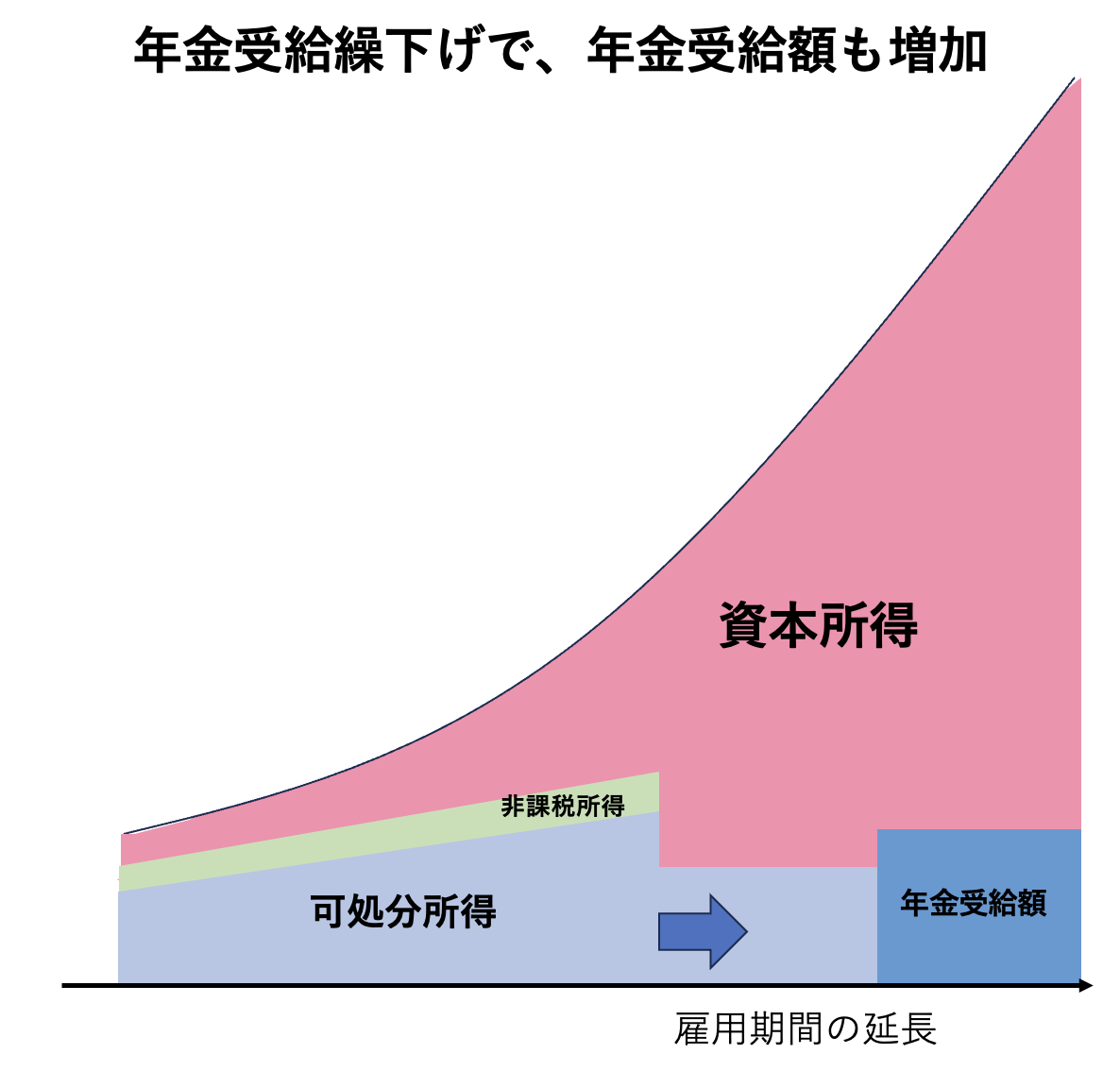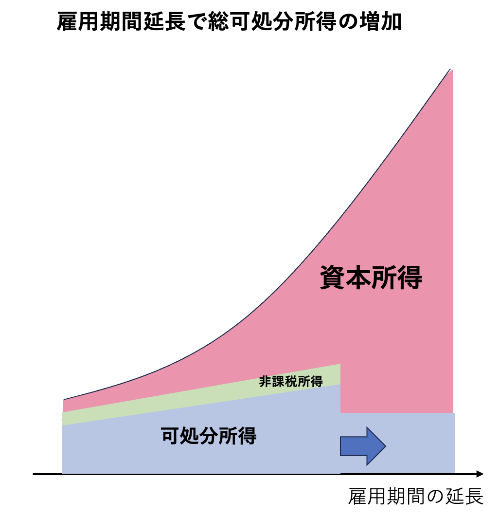 また、雇用期間の延長期間中も運用を継続すれば、さらなる資本所得の増加が期待できます。